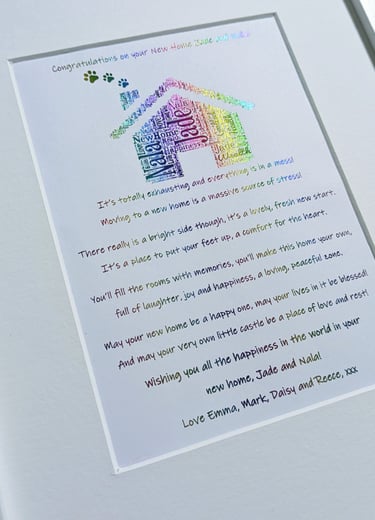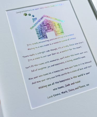 Primarily, we write personalised, custom poetry for every occasion, including christenings, weddings, graduations, house warmings, Irish blessings, memory frames, birthdays - literally any occasion or event you can think of! Our poems are framed and include a personalised, themed word cloud or complementary illustration too.